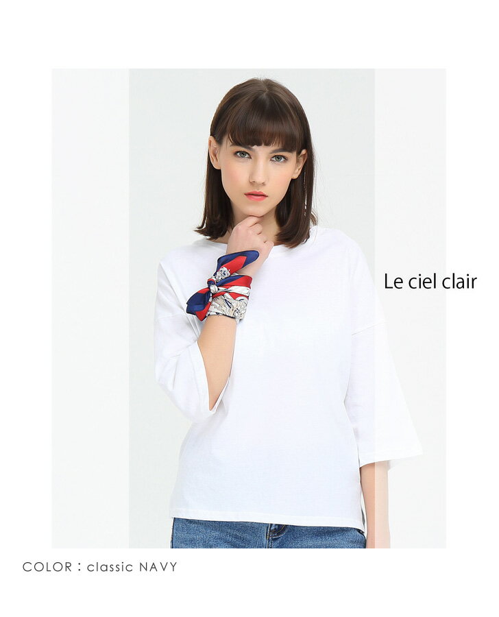 【お買い物マラソン特別価格&送料無料】【NEW】ゆったり MODE トップス レディース ドロップショルダー 七分袖 Uネック ボックス Tシャツ カットソー 綿100% 春 夏 秋【送料無料】