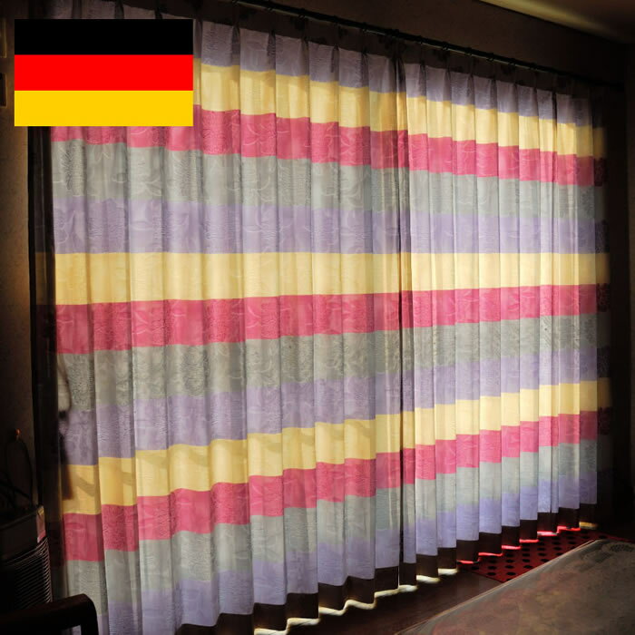カーテン オーダーカーテン 送料無料 高級 ドイツ製 ボーダー柄 「シンク G」 巾200cm×丈135cm (巾100cm・丈135cmの2枚組) 1.5倍ヒダ新築 マンション かけ替え 掛替 1枚(片開き)/2枚セット(両開き)選択可能