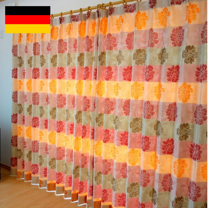 カーテン オーダーカーテン 送料無料 高級 トルコ製 刺繍柄 「ベルガー」 巾200cm×丈135cm (巾100cm・丈135cmの2枚組) 1.5倍ヒダ新築 マンション かけ替え 掛替 1枚(片開き)/2枚セット(両開き)選択可能
