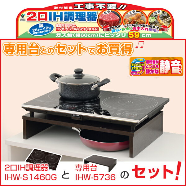 2口IH調理器(幅59cmタイプ)&専用台セット IHW-S1460G(B)&IHW5736 2口IHヒーター IH調理器 IH調理機 100V 据え置き 静音 ガラストップ 【送料無料】 山善/YAMAZEN/ヤマゼン