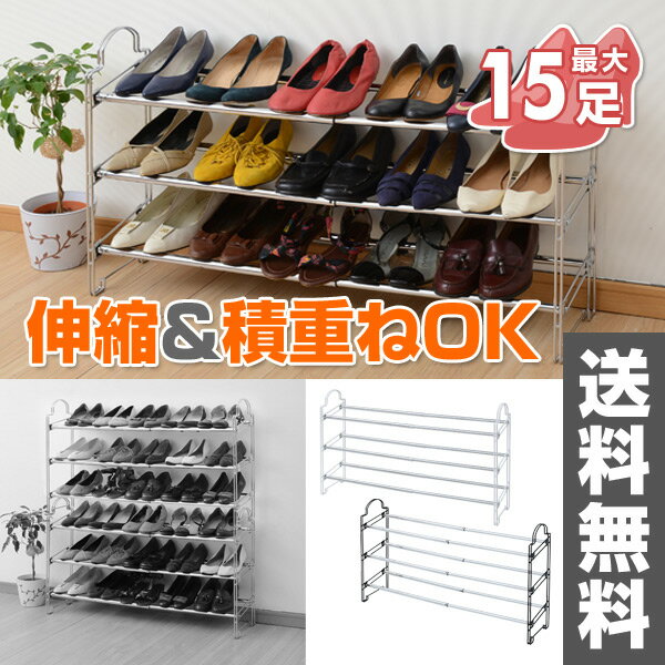 【クーポン配布中 8/20 9:59まで】 山善(YAMAZEN) 伸縮式 シューズラック スリム (幅53-97) HSH-30 省スペース 下駄箱 シューズケース 靴箱 玄関 伸縮 積み重ね スタッキング 【送料無料】
