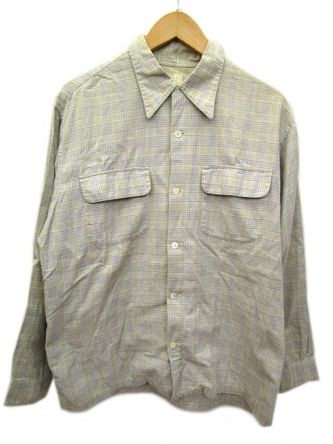 タケオキクチ TAKEO KIKUCHI シャツ 長袖 チェック フラップポケット ワーク カジュアル コットン ルーズ 2 ベージュ Y80976 メンズ 【中古】【ベクトル 古着】 171108 ブランド古着ベクトルプレミアム店