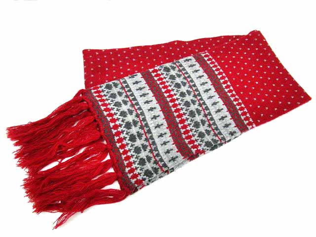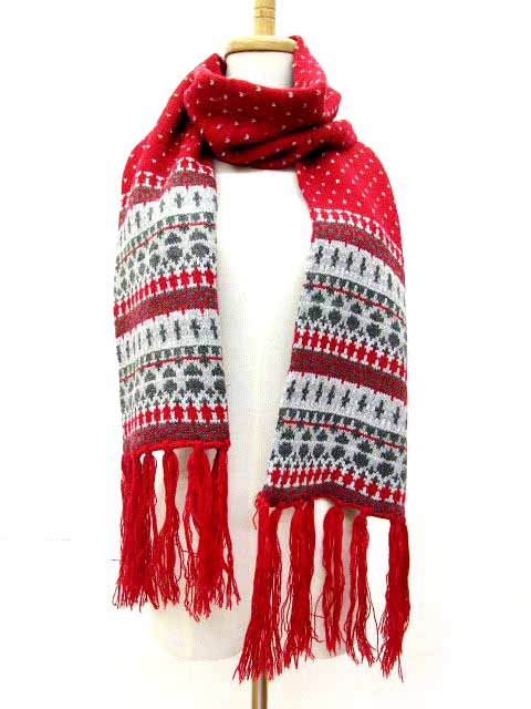 タケオキクチ TAKEO KIKUCHI マフラー ウール フェアアイル柄 ニット ストール フリンジ 赤 レッド S83796 レディース 【中古】【ベクトル 古着】 171224 ブランド古着ベクトルプレミアム店