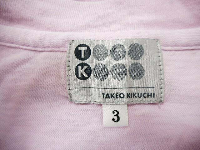 タケオキクチ TAKEO KIKUCHI Tシャツ 半袖 Vネック カットソー 無地 3 ピンク/1 メンズ 【中古】【ベクトル 古着】 180613 ベクトル マークスラッシュ