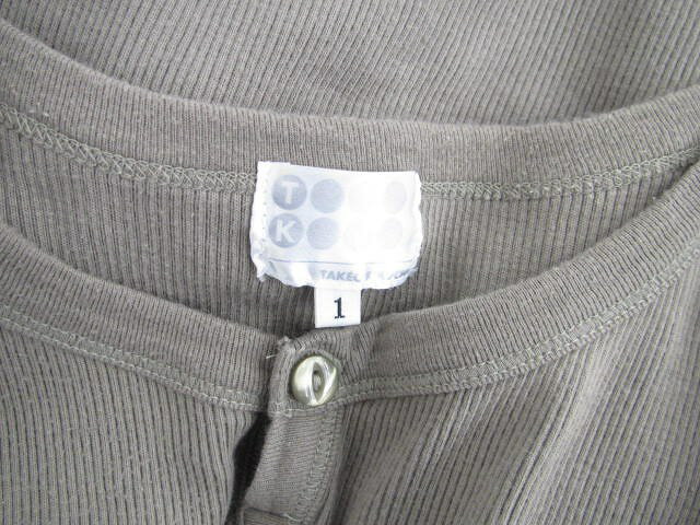 タケオキクチ TAKEO KIKUCHI Tシャツ カットソー リブ ヘンリーネック アップリケ カーキ 1 メンズ/g76 メンズ 【中古】【ベクトル 古着】 180611 ベクトル マークスラッシュ