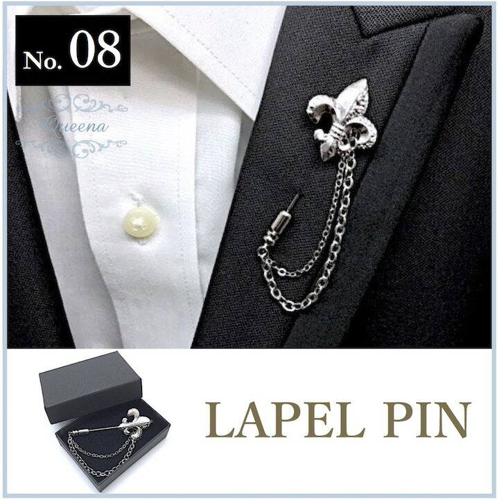 ●メール便送料無料●【ラペルピン】百合 紋章 Wチェーン ラペルピン ピンズ 結婚式 入学式 卒業式 父の日 ユリ 紋章 おしゃれ メンズアクセサリー シルバーアクセサリー メンズブローチ プレゼント【ラッピング対応 ケース付き】ZQ-LAP16008 父の日