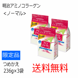 【数量限定3日分増量品】 送料無料[大人気商品]NEW 明治 アミノコラーゲン詰め替え用236g×3袋従来の214gに+22g増量分×3 アミコラ 福袋 ノーマル つめかえ
